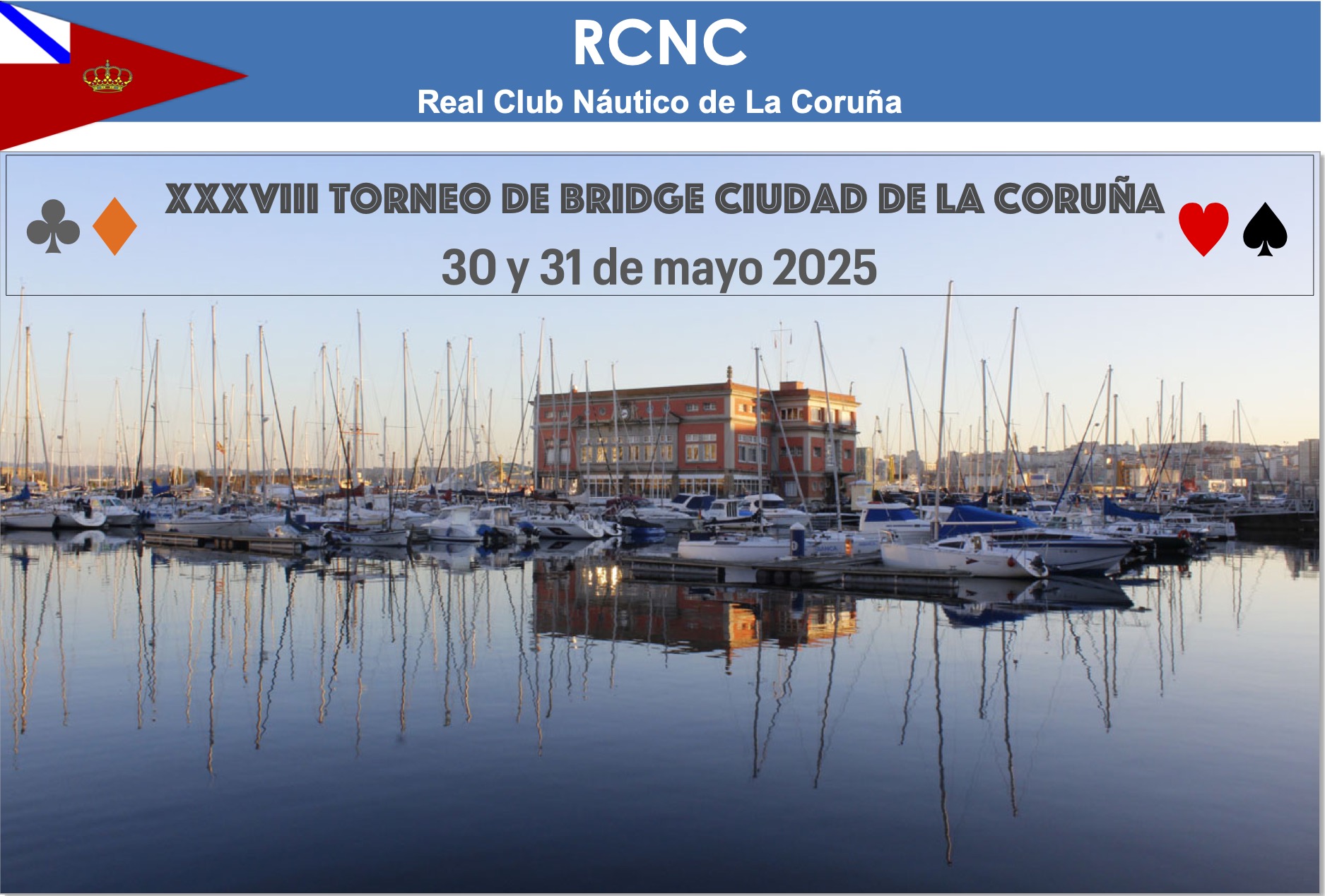Los días 30 y 31 de mayo de 2025 se celebró el XXXVIII Torneo de Bridge ‘Ciudad de La Coruña’, la competición más veterana y una de las más prestigiosas de Galicia, que organiza anualmente el Real Club Náutico de La Coruña.