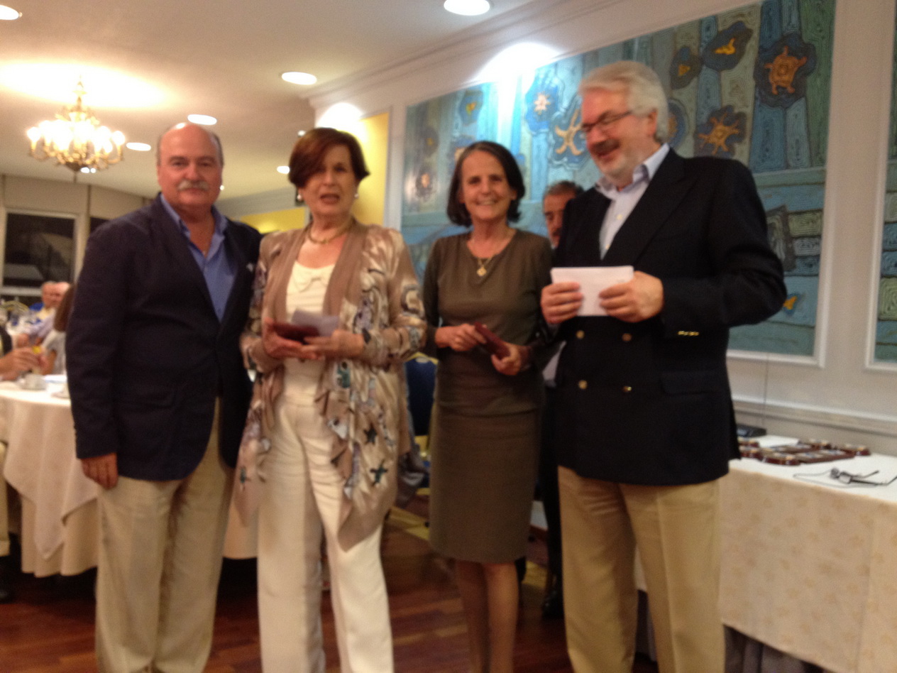 Al finalizar la cena, se procedió al acto de entrega de premios; en primer lugar se dirigió a todos los asistentes, el presidente del Sporting Club Casino, Juan José Medín Guyatt, inicialmente, con palabras de saludo y agradecimiento a los presentes, para posteriormente ratificar la apuesta que hace por el bridge como una de las actividades sociales relevantes en el Club, y confirmar la firme decisión de continuar en el futuro con esa línea de apoyo y colaboración con la Asociación Gallega de Bridge; al finalizar su intervención, entregó a Elisa Nicolás-Correa y a Manuel Pombo Liria, sendas metopas del Sporting Club Casino como homenaje a las Asociaciones que presiden; asimismo, a Elisa Nicolás-Correa, personalmente, le hizo entrega de una preciosa cerámica representando a la Torre de Hércules, símbolo universal de la ciudad de La Coruña, como recuerdo de su visita al Club.Cerámica a Elisa