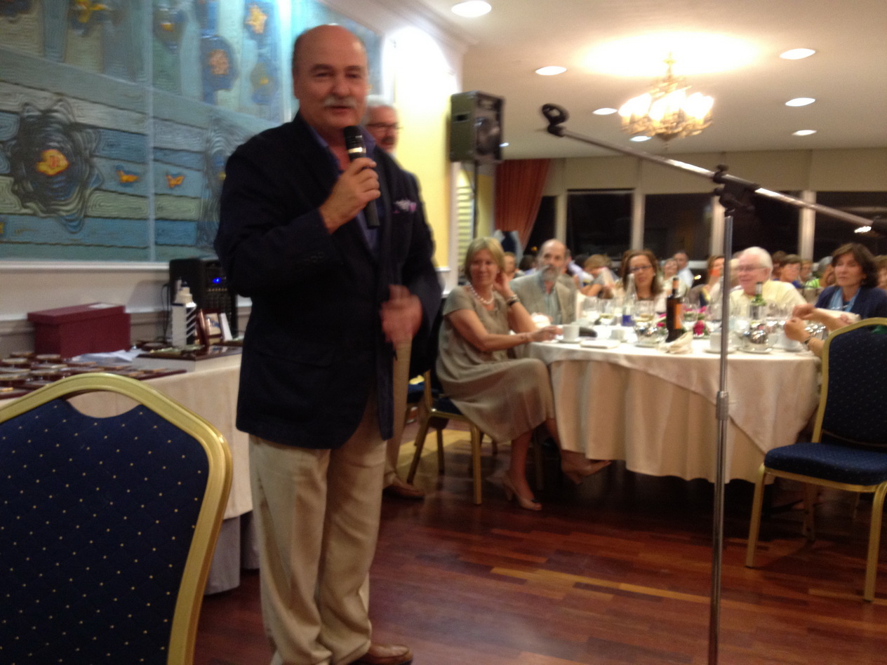 Al finalizar la cena, se procedió al acto de entrega de premios; en primer lugar se dirigió a todos los asistentes, el presidente del Sporting Club Casino, Juan José Medín Guyatt, inicialmente, con palabras de saludo y agradecimiento a los presentes, para posteriormente ratificar la apuesta que hace por el bridge como una de las actividades sociales relevantes en el Club, y confirmar la firme decisión de continuar en el futuro con esa línea de apoyo y colaboración con la Asociación Gallega de Bridge; al finalizar su intervención, entregó a Elisa Nicolás-Correa y a Manuel Pombo Liria, sendas metopas del Sporting Club Casino como homenaje a las Asociaciones que presiden; asimismo, a Elisa Nicolás-Correa, personalmente, le hizo entrega de una preciosa cerámica representando a la Torre de Hércules, símbolo universal de la ciudad de La Coruña, como recuerdo de su visita al Club.Cerámica a Elisa