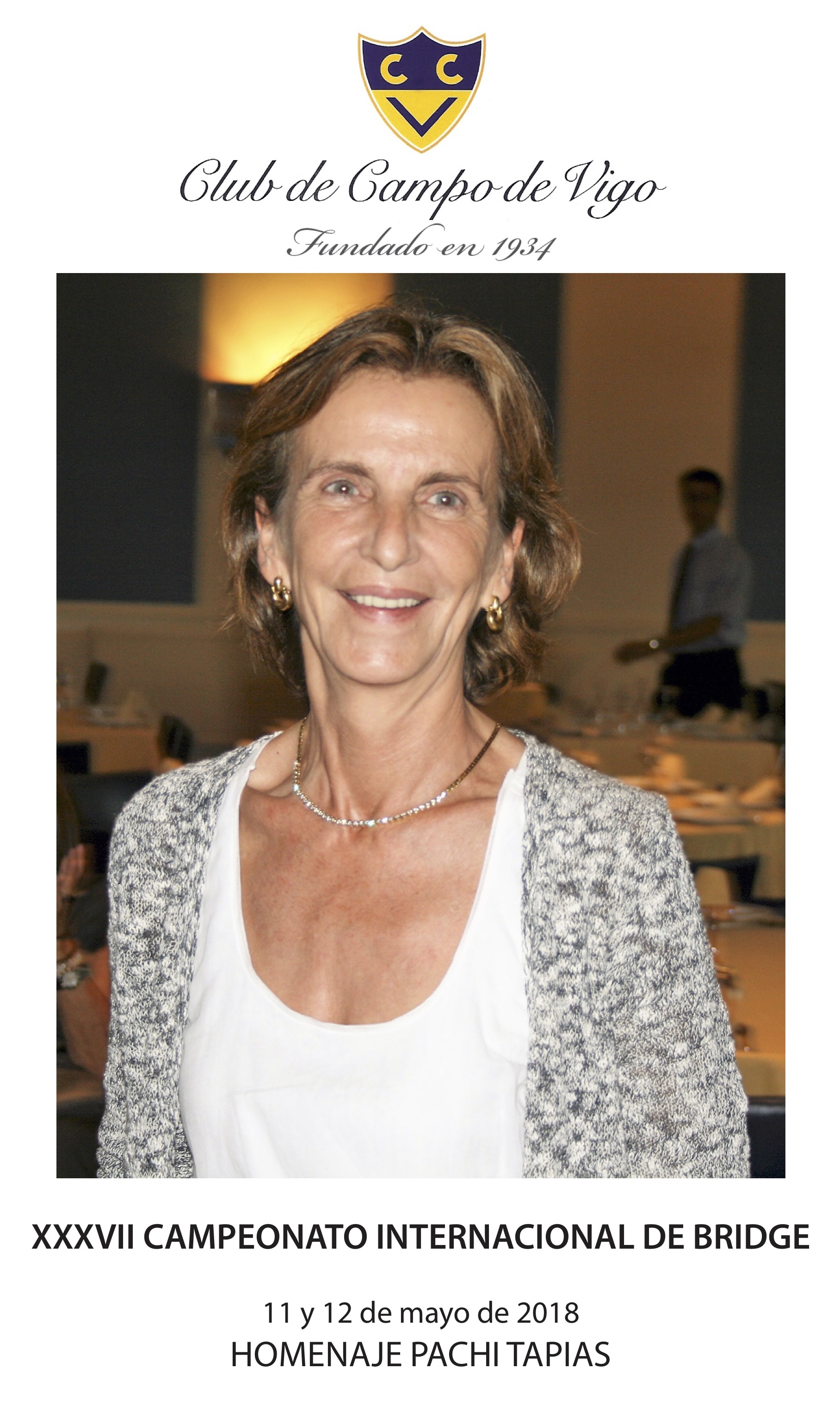 Este pasado fin de semana, días 11 y 12 de mayo de 2018, se celebró en el Club de Campo de Vigo, el XXXVII Torneo Internacional de Bridge. En esta ocasión el torneo se organizaba como homenaje a nuestra querida amiga y excepcional jugadora, Paz Tapias Presa (Pachi), fallecida el 15 del pasado mes de enero; lamentablemente y durante el tiempo que medió entre la programación del torneo y su celebración, falleció, más recientemente, el 26 de abril, otra jugadora especialmente querida por toda la familia del bridge en Galicia, Ángeles Fernández Ramudo (Ges), para la que también las organizadoras del torneo (Manola García-Cambón y Ana Lobato) tuvieron unas palabras de emotivo recuerdo durante la jornada de clausura.